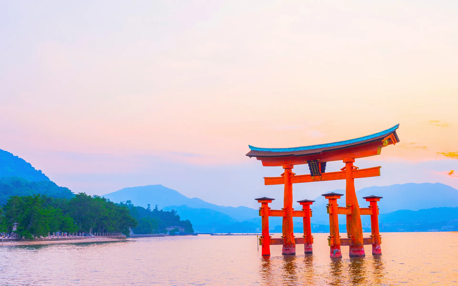 水辺に建つ鳥居の画像